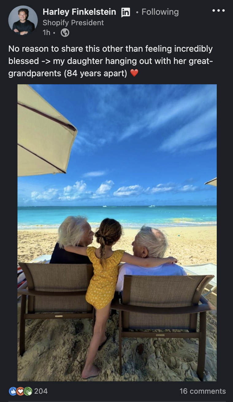 a linkedin post touched my heart today. it was from Shopify president Harley Finkelstein.📲 the post