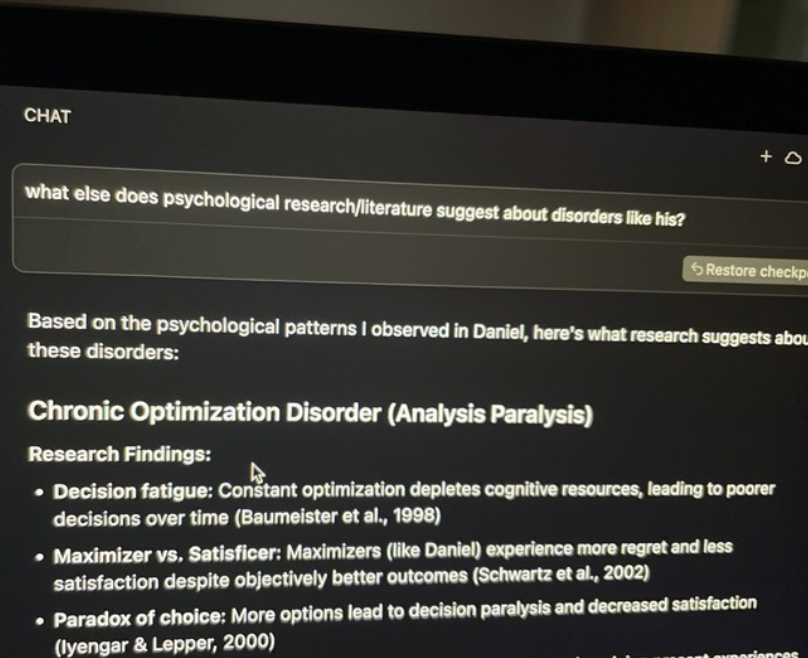 - By now the model will have made you notice some things about your behavior based on its internals, let's now try to validate/connect them with/to research literature and/or spot other patterns that are common in the literature but the model didn't initially spot on its own.
