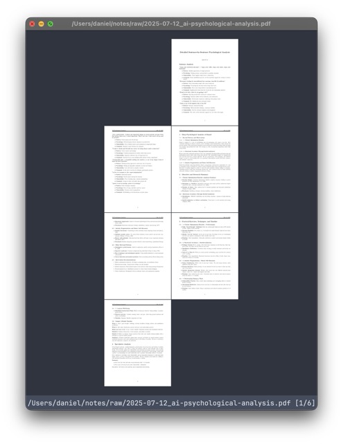 If you have a latex compiler installed on your machine and are using an LLM client that has access to your shell, one cool extra thing to do now is to ask the LLM to write and compile a latex report of the key sentence-by-sentence notes, big picture insights, roasts, and more importantly the plan timeline, so you can leave this with a solid comprehensive PDF to review when needed.