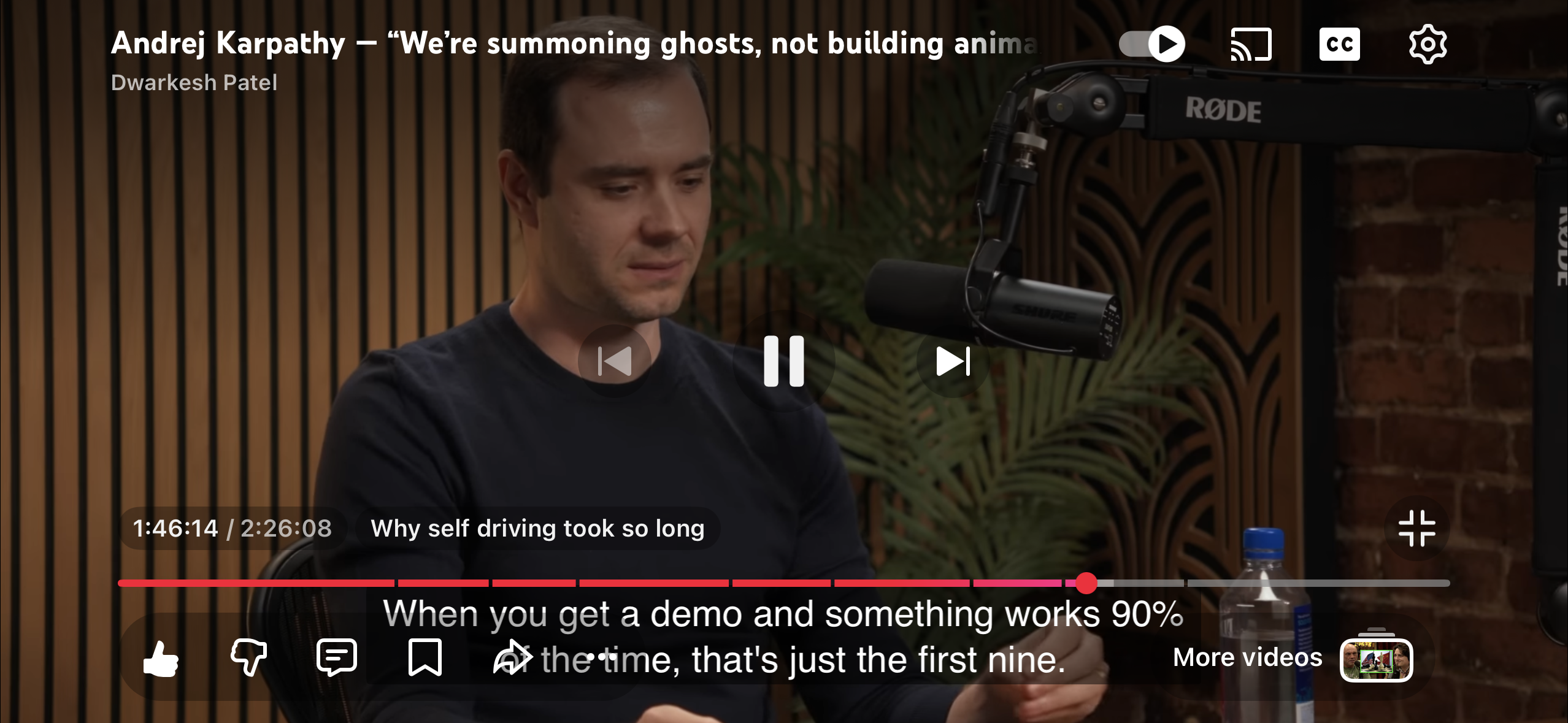 Another note Karapathy mentions both around timestamp 1:44:26 of the same interview and around timestamp 26:27 of his talk at YC AI Startup School 2025 is how big the demo-to-product gap can be.